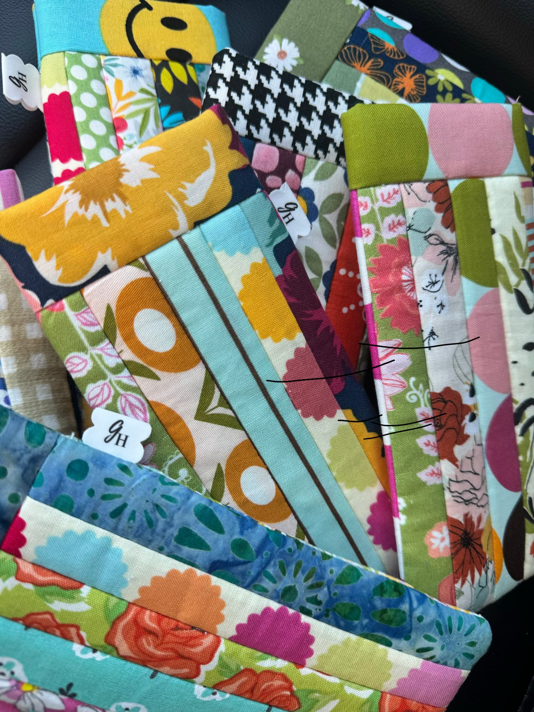 These one-of-a-kind sunglass cases are thoughtfully made from upcycled and saved fabric-no mass production, no duplicates, just intentional handmade pieces in cheerful designs you’ll actually see in your purse! • SUNGLASSES SAFE•SCRAPS SAVED•